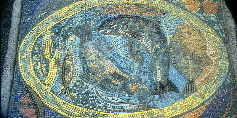 | This mosaic is set in the sidewalk on the Scalloway waterfront, near the castle. Unfortunately, I don't recall anything about its history. |