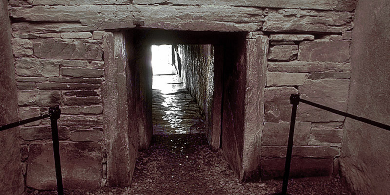 Newgrange, the setting sun shines down the passageway for a few days on either