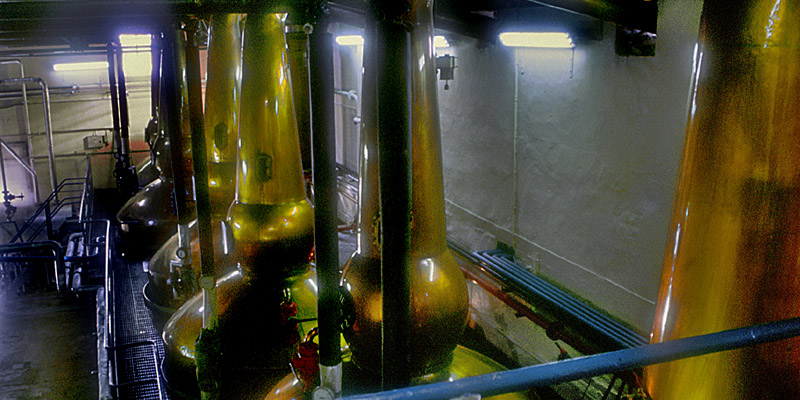 September 2005The BestIt s funny how a certain expression, saying, or even joke that you ve never heard before, or not in a long time, will suddenly crop up several times in short order. Three or four times in the past few days, in both Shetland and in Craigellachie, I ve heard someone ask someone else what the best , or their favorite , malt is, and the answer come back a free one or one someone else buys . This morning I set out to visit Balvenie. The tour is reputed to be fairly intensive (for a 20 fee, it had better be!), and they suggest you arrange transportation to and from, rather than drive, so, at the suggestion of my landlady, I take the bus. Looking at the timetable, I note that the service is very good, and it would be easy to visit quite a few distilleries this way. Aberlour next year, I think. I arrive at the Glenfiddich visitor center Glenfiddich, Balvenie, and Kininvie are all on the same grounds and we wait a bit for someone who called yesterday about the tour, but who does not show. It s just Tom, the guide, and I, then. He drives me over to the Balvenie corner of the property and tells me something of the history of the company, which is independently owned by the Grant family. (The very same can be said of Glenfarclas, but they are different Grants.) First, we visit the floor maltings. Upstairs are small mountains of Optic and Chalice, and at the end of the room are two steeping tanks end to end, maybe twelve or fifteen feet long, six or eight feet wide, and a couple feet deep. These are filled about a foot deep with grain, which is then covered to a depth of six inches or so with water at ambient temperature. In a couple days, the grain will have absorbed all of the water, and it will then be pushed through holes in the bottom of the tank to the floor below. At one point, I get to thinking about how much land will produce how much whisky, and I ask Tom about yield per acre. He doesn t know, but calls his father, a farmer, on his cell phone, and gets the answer. I wish I could remember, for your benefit, the math we worked out, and I hesitate to give a ballpark figure based on hazy recollection; I seem to recall a figure of four bottles or so an acre, but I can t swear to it. Anyway, I was impressed by Tom s efforts to satisfy my question. Downstairs, we see the malt spread out on the floor, and chat with the two men who are charged with turning it to keep it from getting too warm. There is a machine that looks a bit like a snowblower for the job, and it is pulled along a cable, making their work far less back-breaking than the old method of using wooden shovels. Still, it is very labor-intensive. Malting is not done in the summer, as it is too warm, and Balvenie will not run tours in the summer months for that reason. Next we see the mash house, which houses two stainless steel mash tuns; the larger is Kininvie s. Kininvie s product is intended entirely for blending, and I suspect that one of the reasons for building it separate from Glenfiddich is to vat the product headed for the blenders so that none will end up in the hands of brokers and subsequently appear as IB s of Glenfiddich (or Kininvie, for that matter). But I wonder, wouldn t many of us be interested in an IB of vatted Glenfiddich/Kininvie, anyway? No matter, they are obviously very careful not to let this happen. Then the stillhouse. This and the mash house are essentially like any stillhouse and mash house on any tour you ve ever been on, but of course the stillhouse is, visually, the centerpiece of any tour. Tom remarks that everyone s face lights up when they step into the room, and mine is no exception. I do my best to take some passable photos. Tom wants to get us through the cooperage before the workers there take their lunch break, so that s next. Safety glasses are mandatory, as are ear plugs it s a very noisy place. It s quite a large, one-room building, where I see barrels being broken down, others being reassembled, and all manner of repair work. A cooper pounds the barrel top into place, stuffs the cracks with a length of reed, and tightens the hoops. Another puts an old, tired cask on a machine that scrapes out the inside, then on another that rechars it with an alarming blast of flame. I am too slow to get a photo. I look inside the finished barrel; the new char looks more like a light toasting. It will be good for one, possibly two more fills. Outside is a vast yard with endless stacks of empty bourbon barrels, sherry butts, port pipes, and no small number of unidentifiable oddball vessels of various dimensions. I ask Tom about the standard practice of rebuilding 200-litre bourbon barrels into 250-litre hogsheads; he says Balvenie no longer does it. Into the warehouse. We see barrels ranging in age from a few years old to forty and more. Tom pulls the bung on a barrel of 1967 vintage and invites me to stick my nose in it. It smells absolutely wonderful, but to be quite honest, if you have a bottle of 15yo Single Barrel, you can experience very similar. Of course, you won t be standing in a dark, damp Balvenie warehouse with your hands resting on a dusty barrel full of thirty-eight-year-old whisky, surrounded by hundreds of like casks. Now, every time I open my bottle of the 15, I will be. All that s left is the tasting. Tom takes me to a room in a small building that was once the distillery manager s office. There he pours us each full drams of the Founder s Reserve 10, DoubleWood 12, Single Barrel 15, PortWood 21, and the Thirty, in Glencairn glasses. He puts his hand over the top of a glass and gives it a vigorous shake; I follow suit and note the exponential intensification of the nose (after licking the excess from my palm). He does not rush me, talks me through each dram, and gives me plenty of time to enjoy every last millilitre. I experiment a bit with water, but I ve never really liked using it, and when it comes to the Thirty, I add not a drop. It is intense, deep, complex; Balv