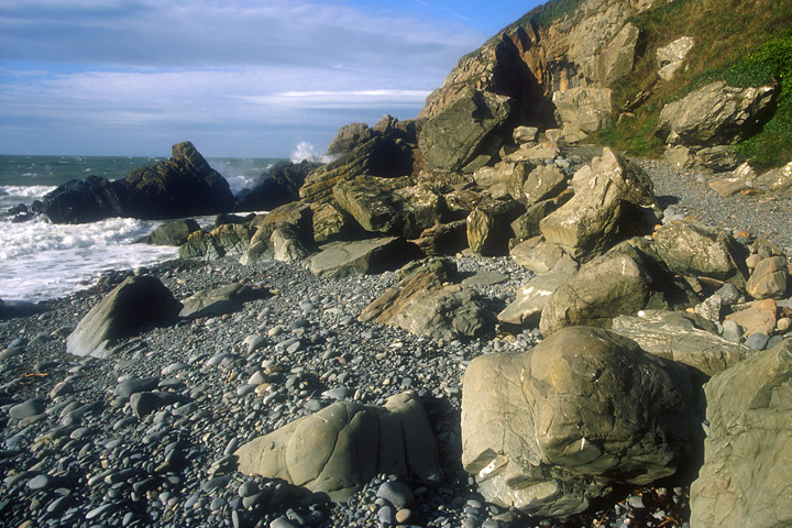 multitude of smooth round stones along the way. The surf rattles them as it washes in and out. Many of the stones