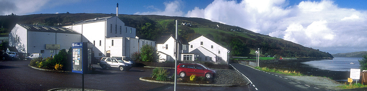 bridge we go, through Broadford, left at Sligachan, and along Loch Harport. We skirt the Talisker distillery and cross