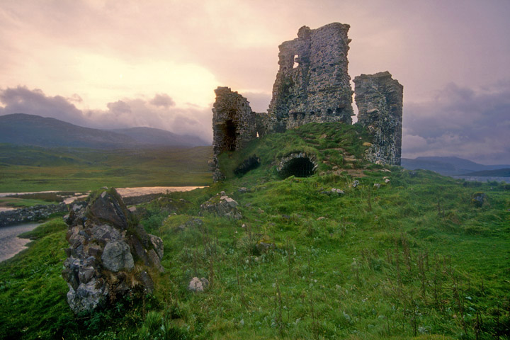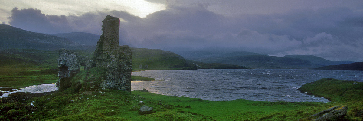 Ardvreck Castle is a nearly formless ruin on the shore of Loch Assynt. It was built by the MacLeods of Assynt