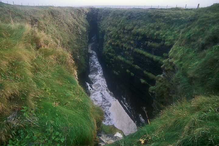the road, there is a car park, and from there it is a short walk to the Gloup. This is a long, narrow sea cave whose roof