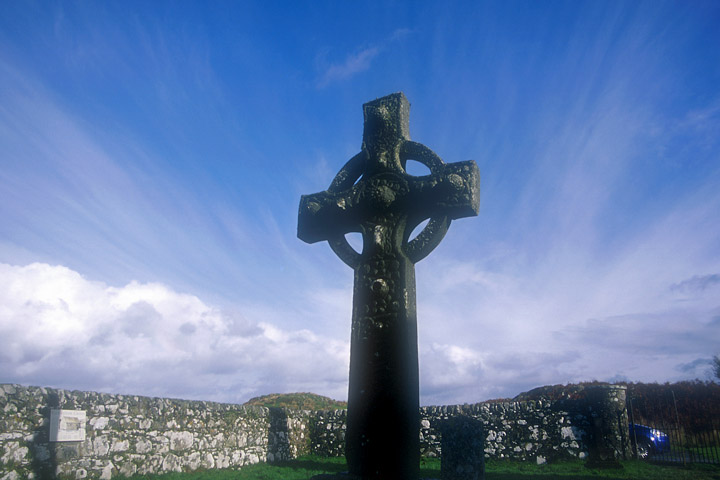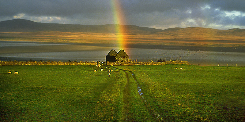 The sky breaks as we drive across the vast bog toward Port Ellen, and then out the road to Kildalton, where we