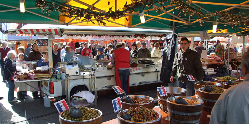 of produce, cheese, and the like, and it seems to me that most of the stallholders are French.