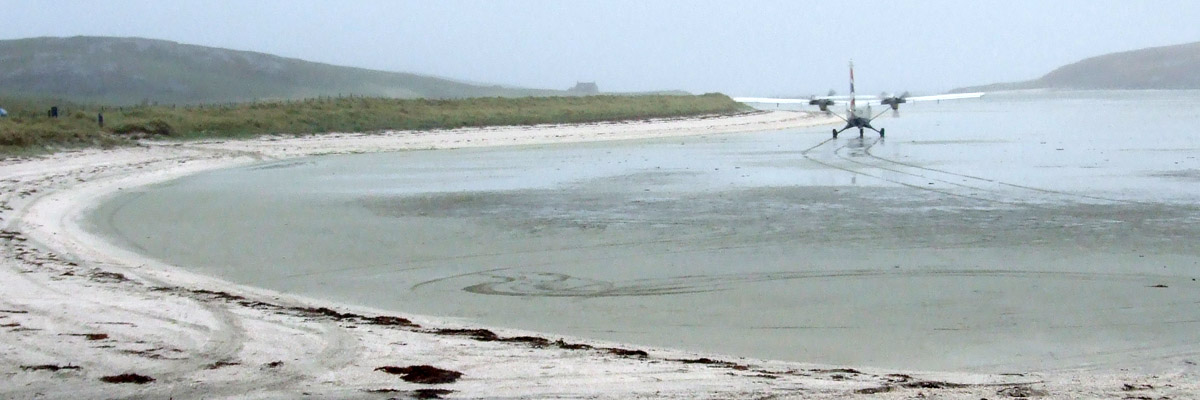 Cockle Strand, the beach that serves as the airport runway. Last night we dined on cockles picked off the same sands. A