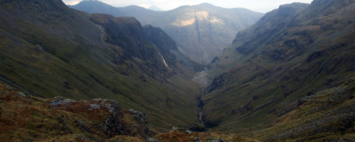 day, and we have spectacular views back down into the glen, but as we climb the headwall at the top of the valley, we enter