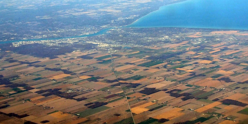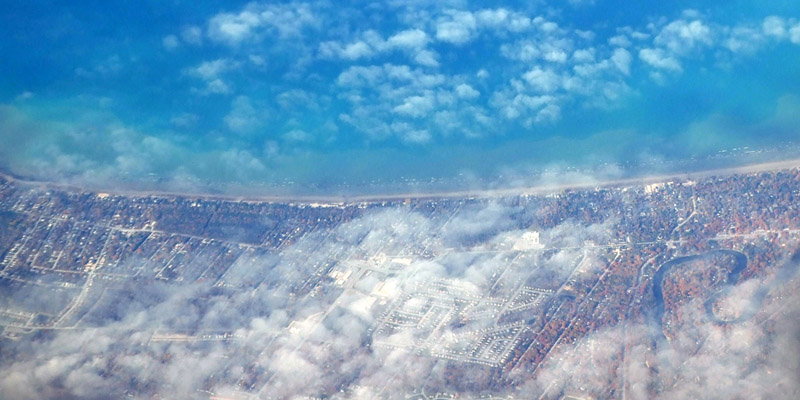 the long flight to Detroit. Cloudy over the UK, and eastern Canada, too, but the cloud cover opens up as we enter Ontario airspace.