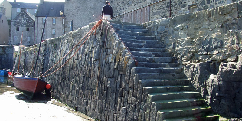 old Moray herring port of Portsoy. Arrive to find a work in progress--the plant was closed for more than twenty years before new
