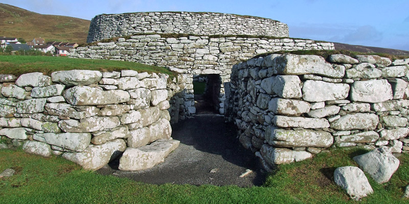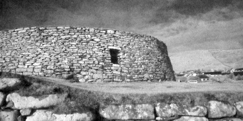 broch, contained within an outer ring fort, a feature which is unique, as far as I know. Its little loch was apparently tidal
