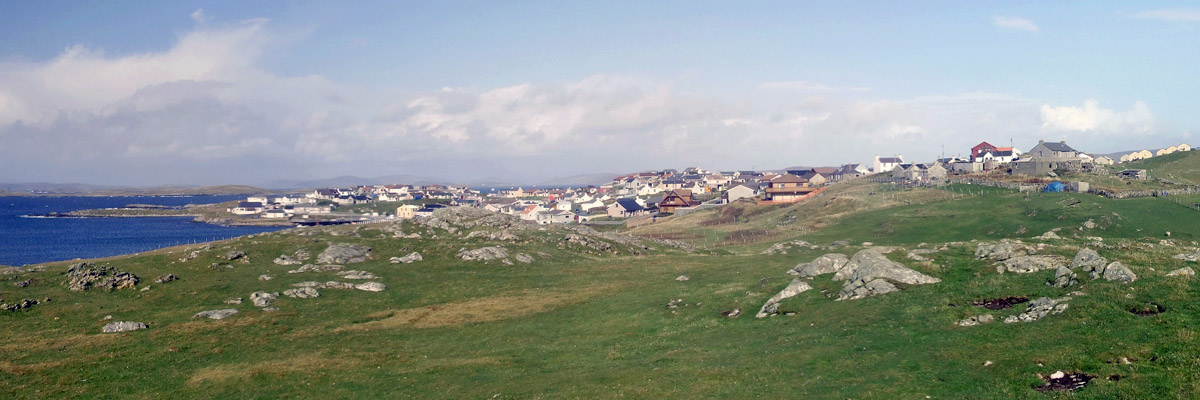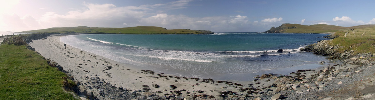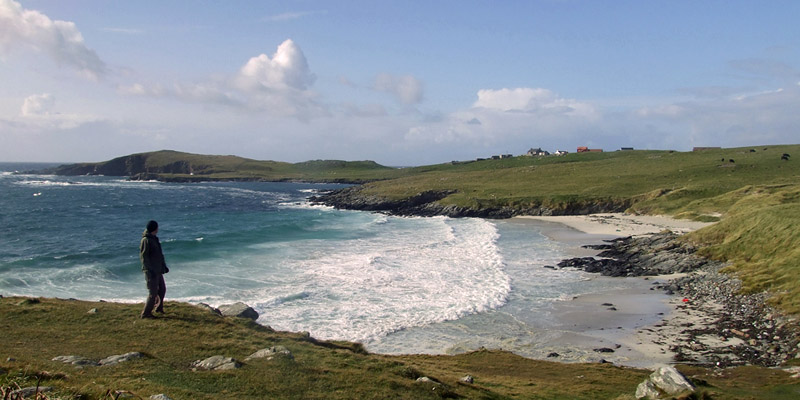 We drive west to Scalloway, then south over a couple of short bridges to the islands of Trondra and West Burra. At the