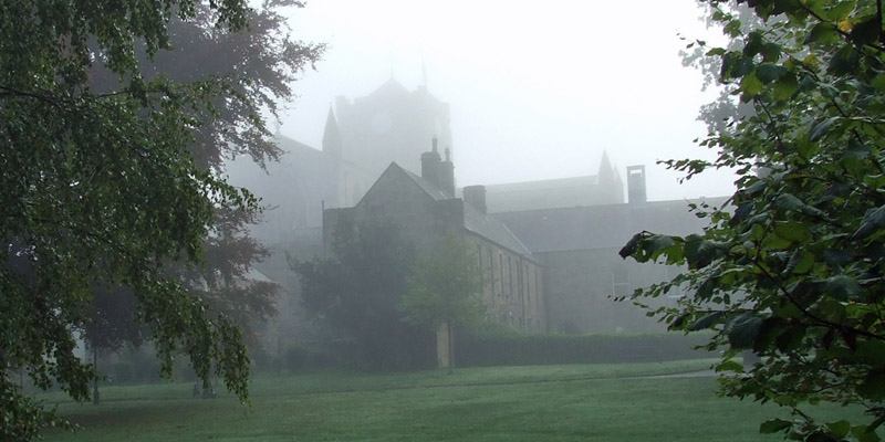 that "red sky at night" thing. Once I'm out, however, it's obvious that Hexham is merely shrouded in fog. The sky