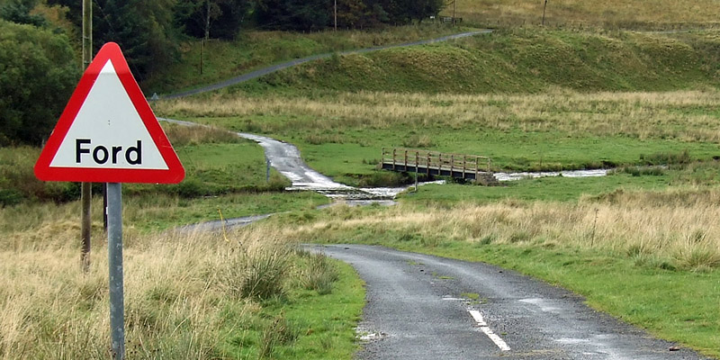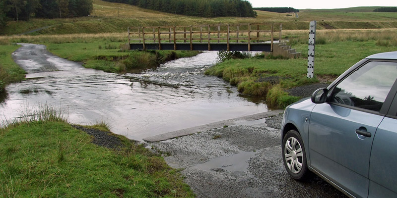 Back down, I can see that the path of Dere Street coincides briefly with the modern road. There is a ford just down from
