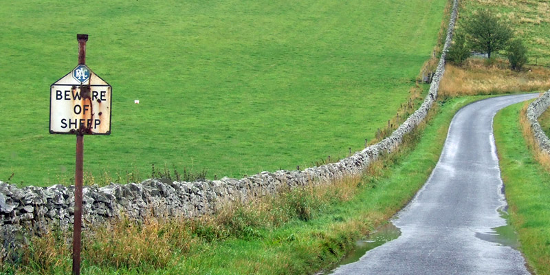their herders. (Well, the Pennine Way is over there somewhere, too.) Driving these remote roads, and now looking down into this