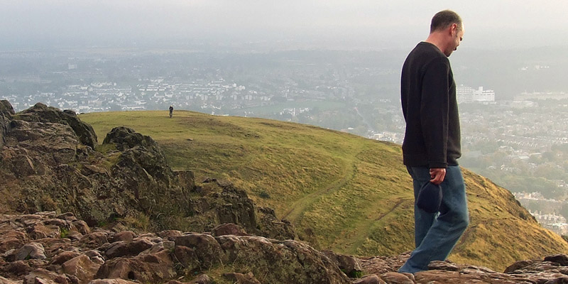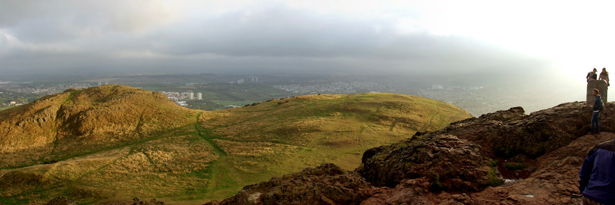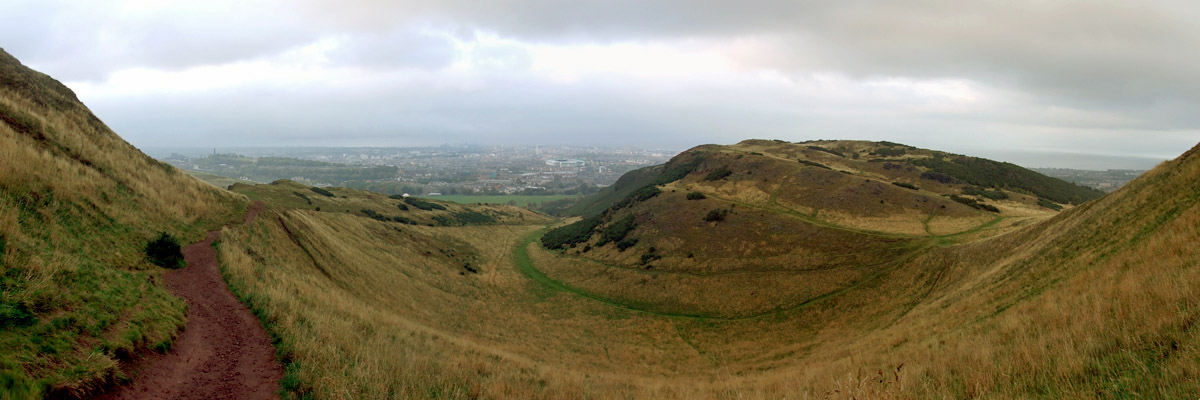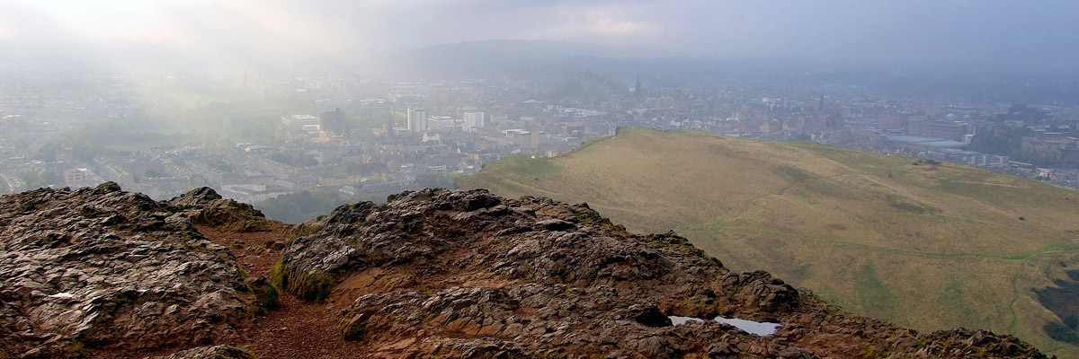 set foot in) on either side of us. We pass these by, instead entering Holyrood Park and ascending to the volcanic knob of Arthur's