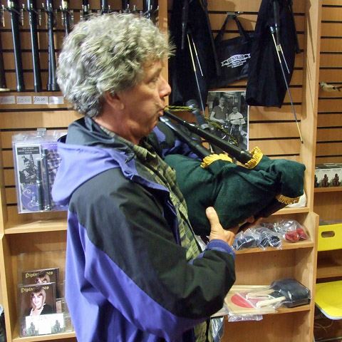 the hilariously inexact translation of flute skills to the highland pipes. Scott and I are in hysterics. The shop staff are