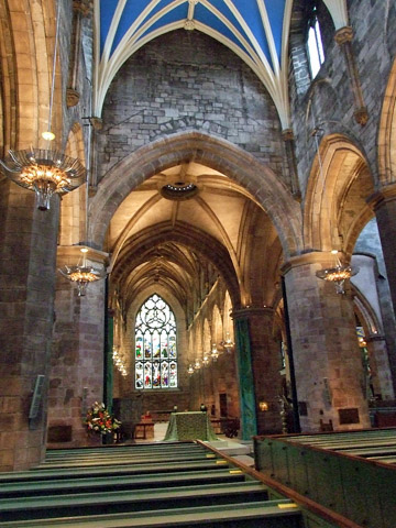 foot in St Giles Cathedral. There has been a church here since the 12th century, at least, but the edifice has gone through an