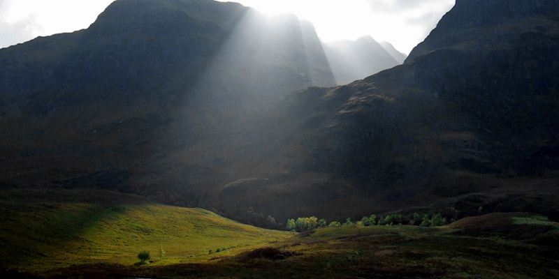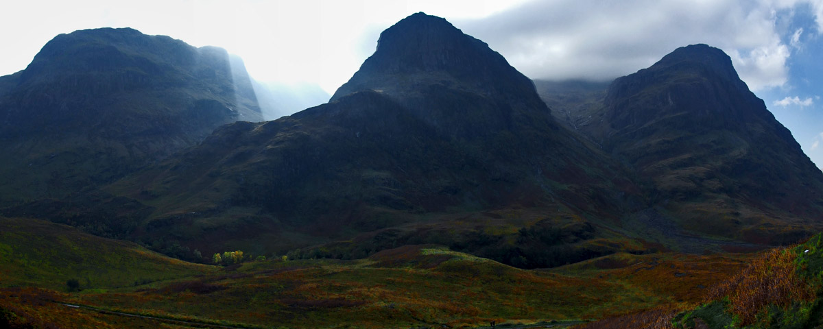 We head up Glen Orchy, then down Glen Coe. We stop at the viewpoint looking up at the Three Sisters, and I tell Win and Scott