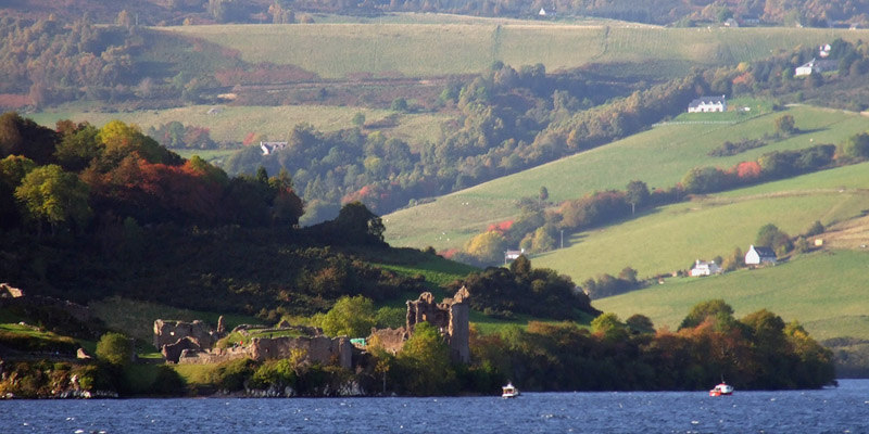 through some scenic hilly country, and then a long stretch right alongside the loch, where we get a good view of Urquhart Castle on the