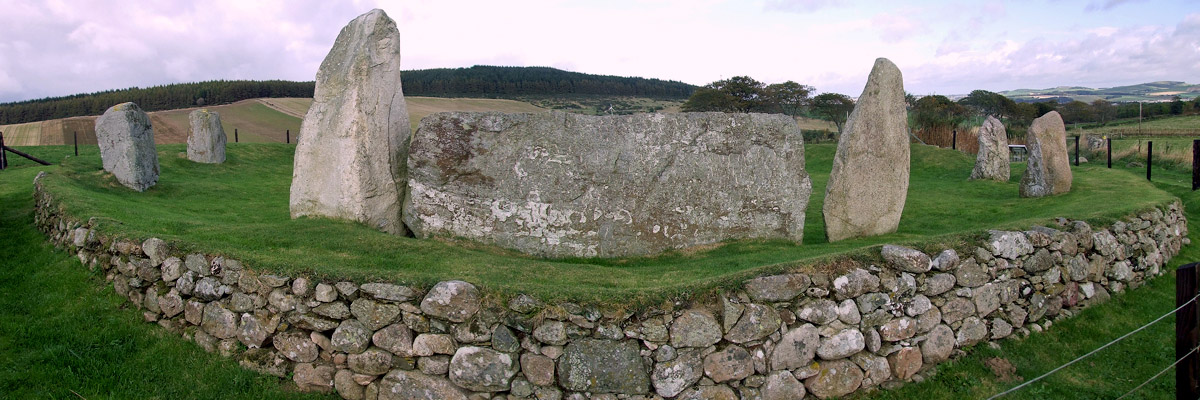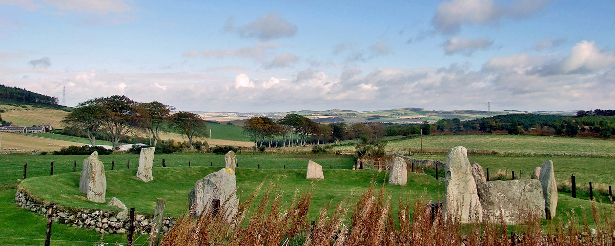 to this corner of Scotland. The recumbent--horizontal--stone is always to the southwest of the circle, and it's thought that these were