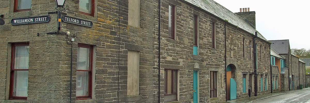 especially in the lower streets (including one named for Telford) near the waterfront. There, and up on the hill toward the distillery,
