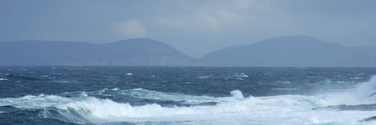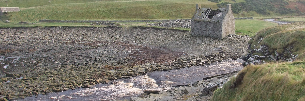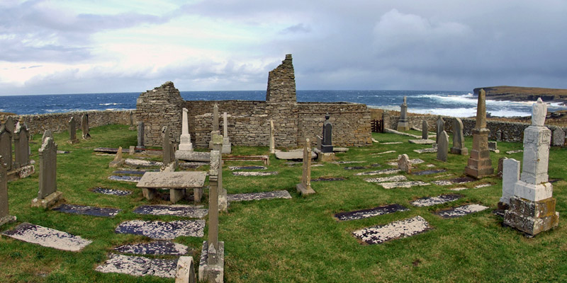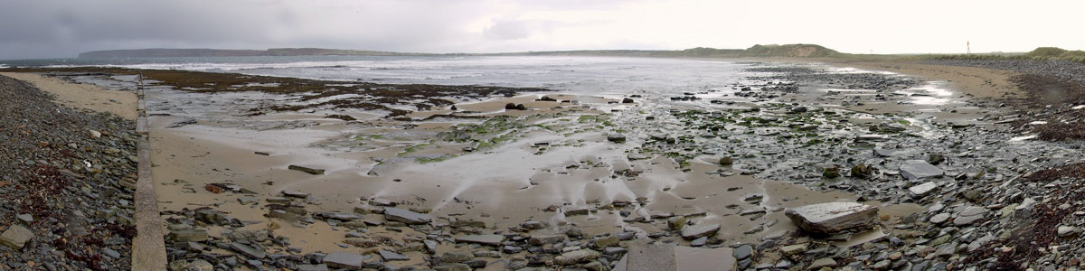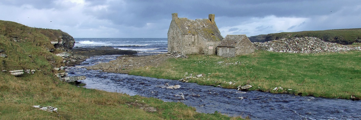 The road comes to a junction on the coast near Castletown, at one time the center of a prolific flagstone-quarrying operation.