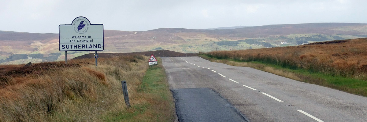 The road ascends after Dounreay, the border with Sutherland coming on a rise with a view of the hillier land ahead. A half-hour
