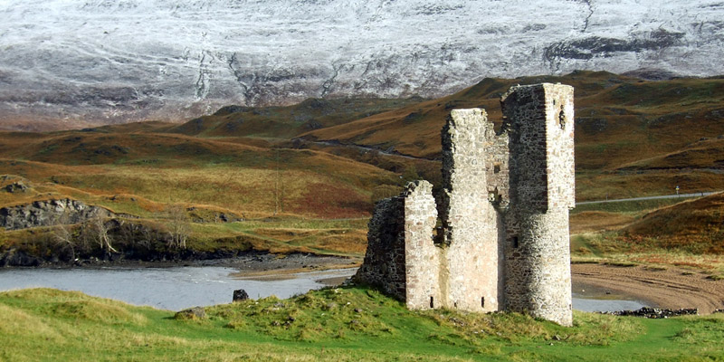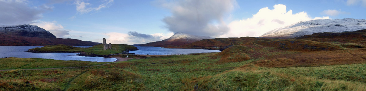 before heading out around 10:00. Turn south on the main road to go have a look at Ardvreck Castle on Loch Assynt. Ron and I passed by