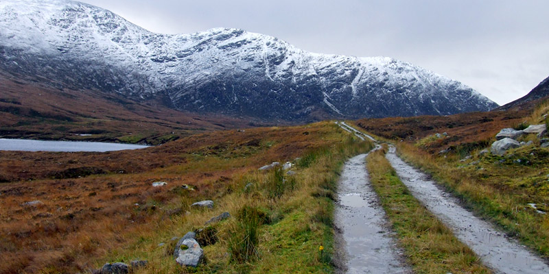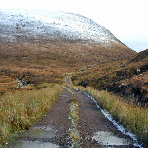 to turn around. I descend at last to Gobernuisgach Lodge--it's their road, I guess--and from there, it's a very smooth couple of miles