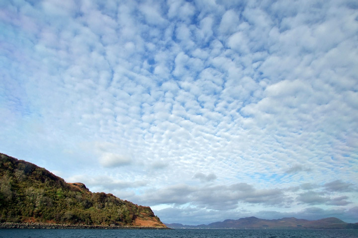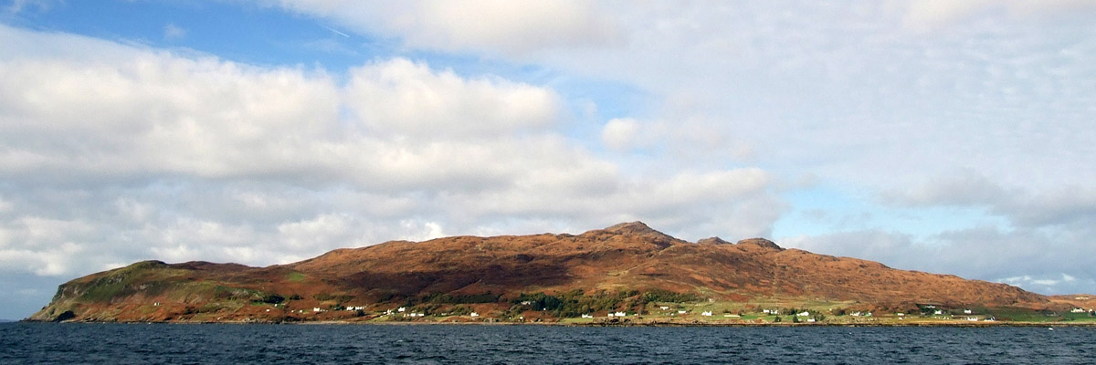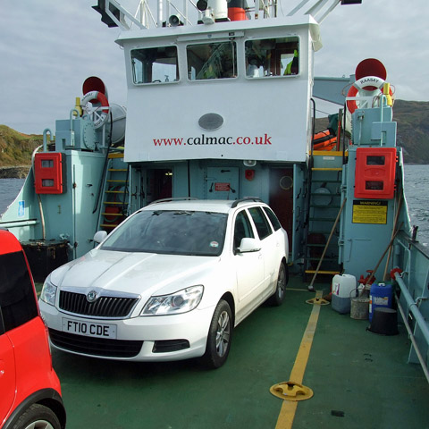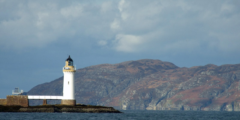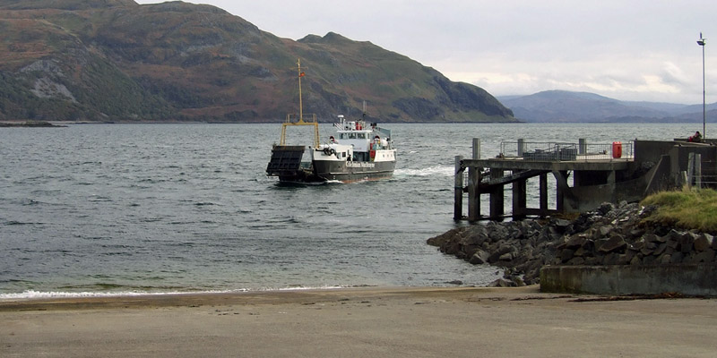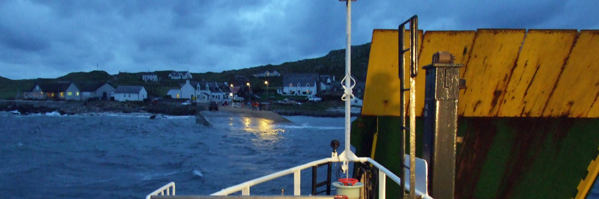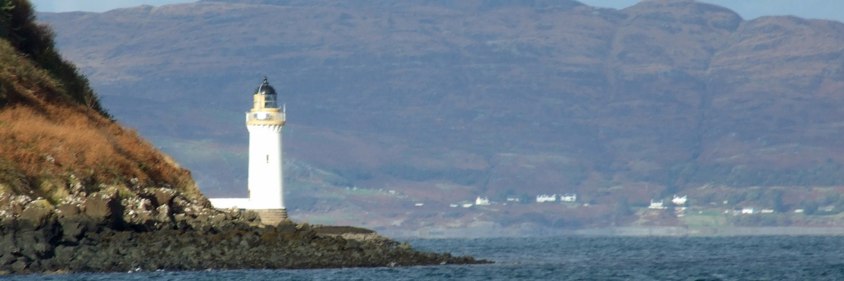 The ferry crossing, under a pretty sky, takes half an hour, passing the Stevenson lighthouse at Rubha nan Gall on the way into