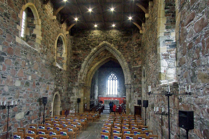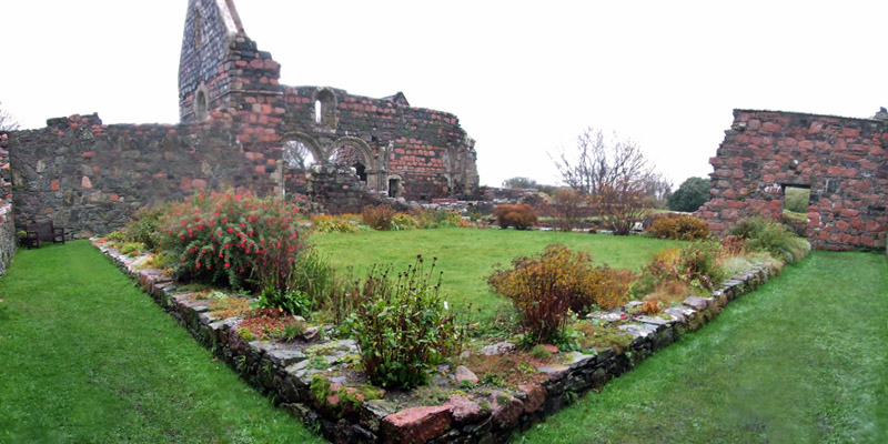 Back near the village, I visit the Augustinian nunnery. This was established by Reginald, who made his sister Bethoc the first prioress. It's a lovely ruin, laid out to the standard plan, albeit very much smaller than the abbey.