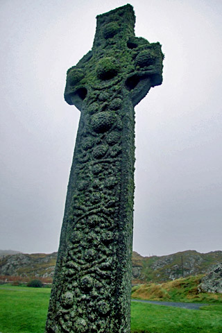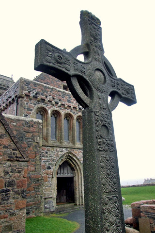 Pilgrimage is nothing new here, of course. In the old days, pilgrims on their way to the abbey had a choice of 357 carved stone crosses to visit along the way. There are but two still standing: MacLean's Cross, along the road to town, and St Martin's Cross, which has stood in its spot in front of the abbey for a thousand years. Most of the rest were destroyed during the Reformation. A museum in the abbey's infirmary houses the fragmentary remains of a few others. Among these are St Oran's Cross, the oldest of Iona's crosses, and St John's Cross. This latter, a replica of which stands out front, was overambitiously large, and collapsed under its own weight not long after erection. It was remounted with circular buttresses supporting the arms. The cross eventually fell again, but the circular support was incorporated into later crosses, and widely copied. Thus was born the Celtic cross we recognize today. The museum also features a variety of other carved stones, particularly grave slabs taken from Reilig Òdhrain (there are more in St Oran's Chapel).