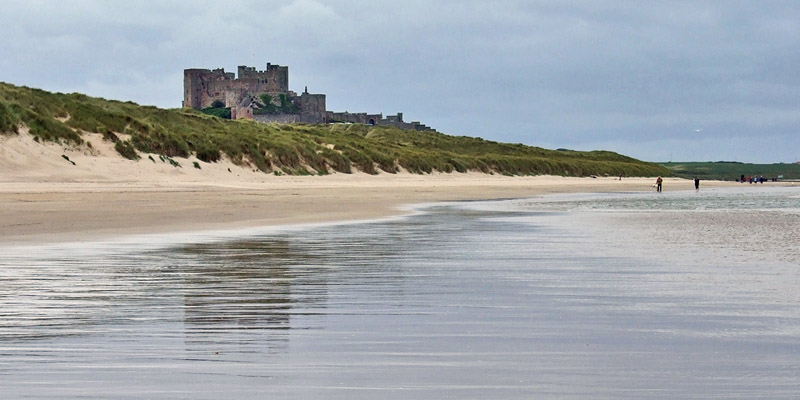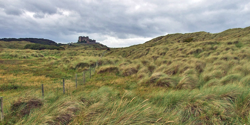 village itself. I have lunch and a pint at the Castle Hotel, and then pass through the dunes to the beach for the return walk to Seahouses.