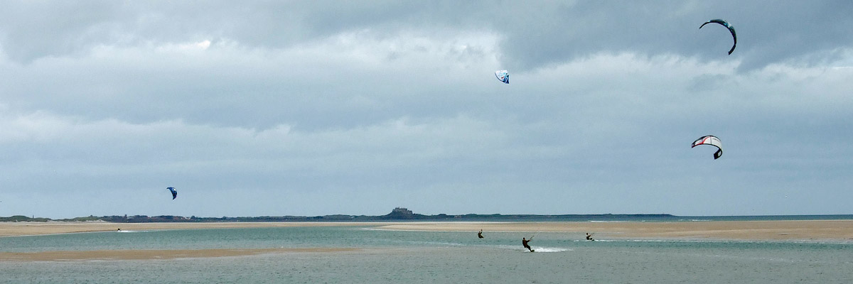 It's still early, and I'm feeling pretty good, so I keep on past the castle to Budle Bay, where I watch a group of parasailers