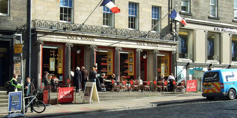 We grab a nibble at the Caf Rouge, then head up toward the Royal Mile. I want to shop at Coda, the folk music record shop,