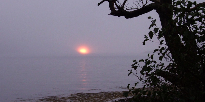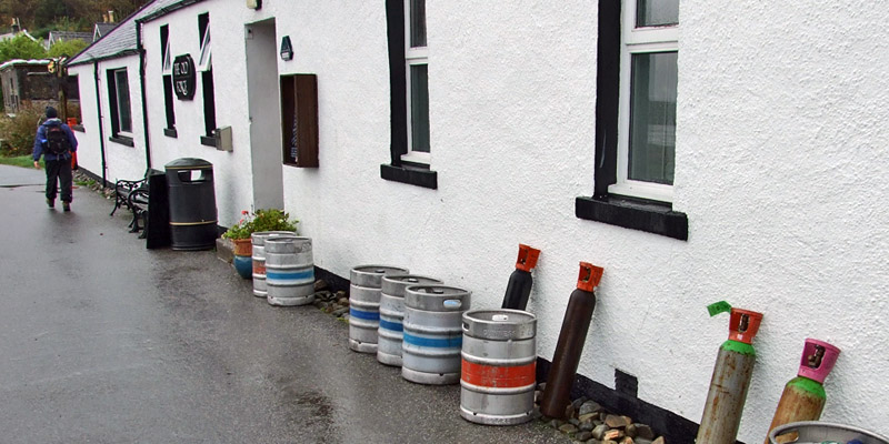 The sun, absent all day, shows as a dying ember as we head back to the Old Forge for dinner and pints. It's quieter than last night,