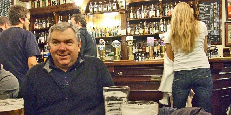 The Bow closes sensibly early, so we bid Willie goodnight and, perhaps not so sensibly, have a nightcap at the Stockbridge Tap. Ron will