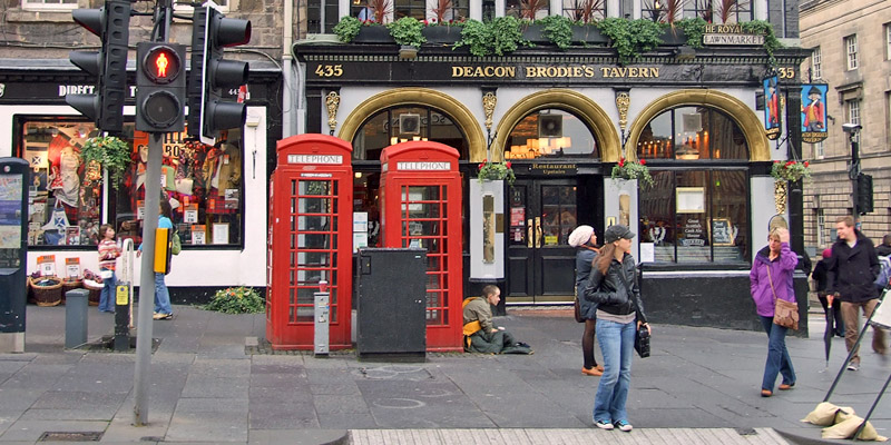 too sorely tempted--there's no food there) toward the Royal Mile. We are now feeling pretty hungry, and decide to check out Deacon Brodie's