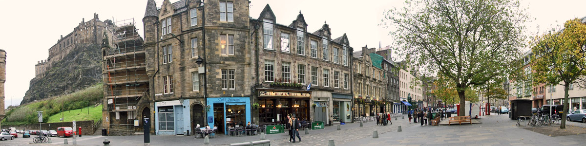 We have another pint in the Grassmarket, and then walk up Bow and Victoria Streets (averting our eyes as we pass by the Bow Bar, so as not to be