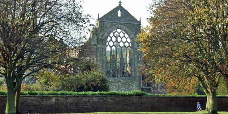 circle around the back side of the Palace of Holyroodhouse, on a walkway I hadn't known existed before now, getting a look at the ruined Holyrood Abbey