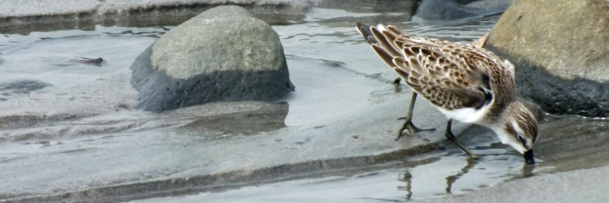 misty weather. I linger for some time nonetheless, picking some pretty stones from a stretch of shingle, and turning back after reaching an area of