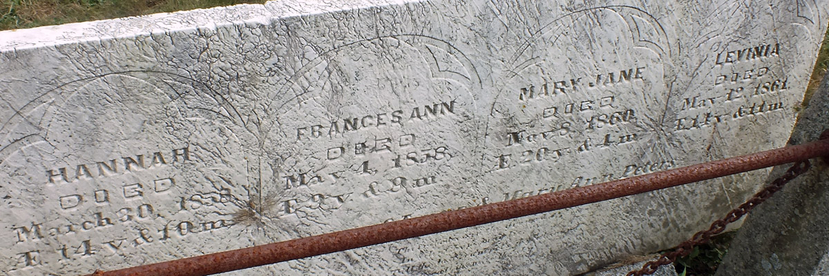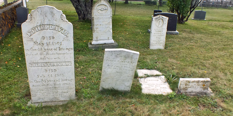 Just outside the village is Hilltop Cemetery. Among the stones is one for Ethel Davis, who died at 46 in 1801, and his wife Christiana, who