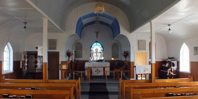archipelago. Back down, across the fence, I visit the little Anglican church and view the overgrown old burying ground. A fellow with a