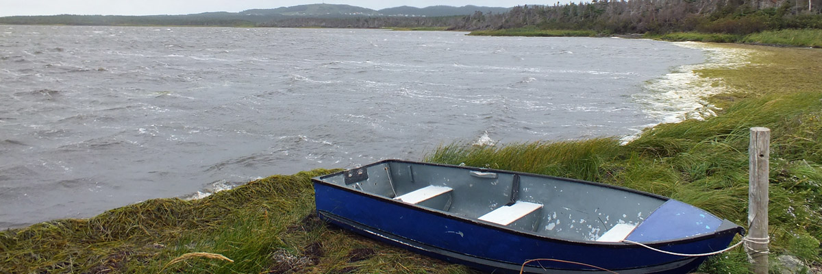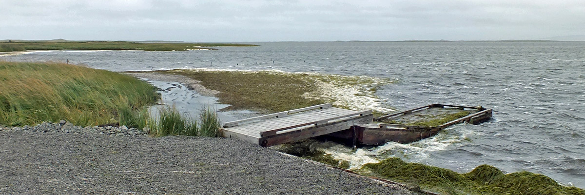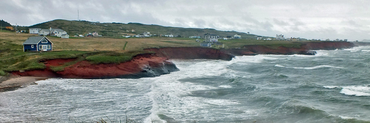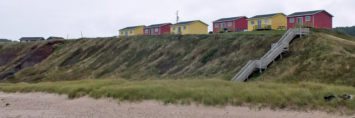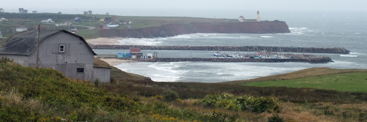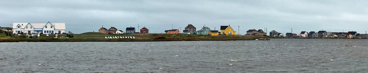 Canoe Point, where a small dock juts into la Baie du Havre aux Basques. This is a large lagoon between Île du Havre Aubert and Île du Cap aux Meules,