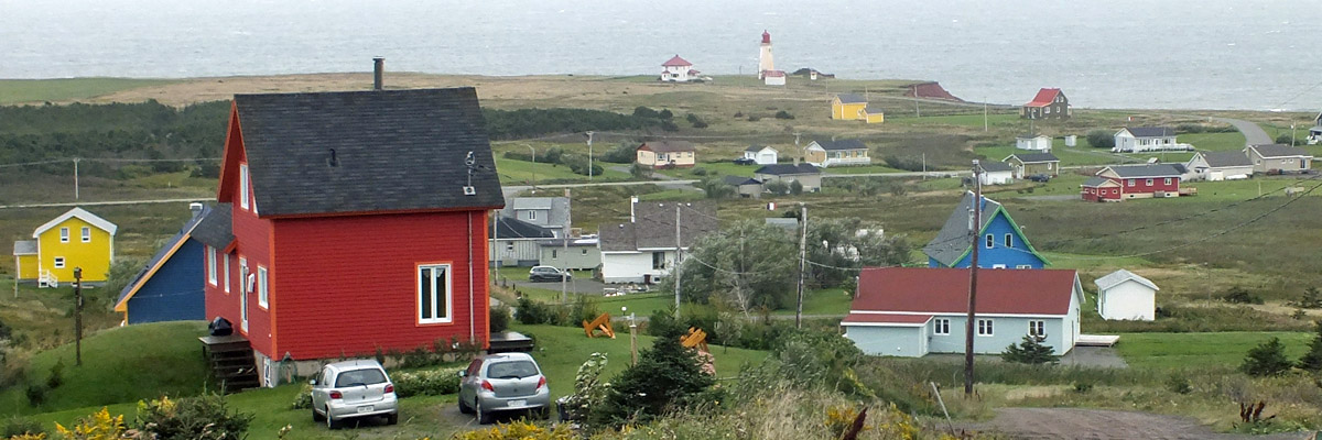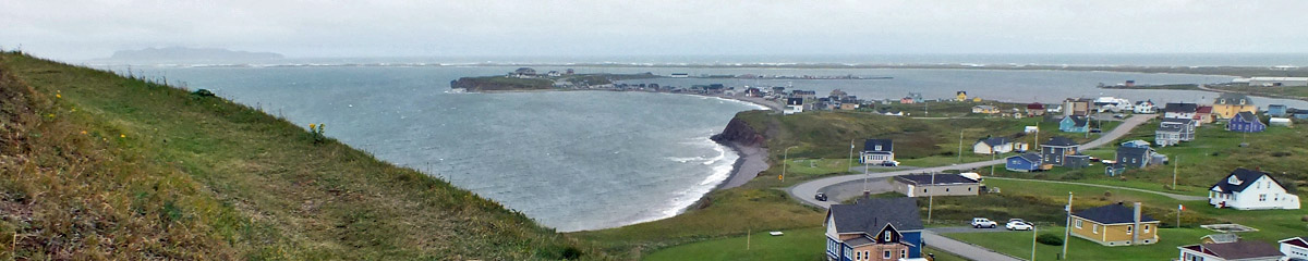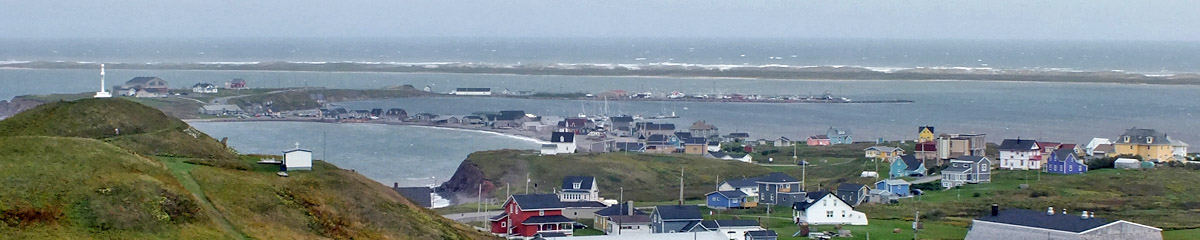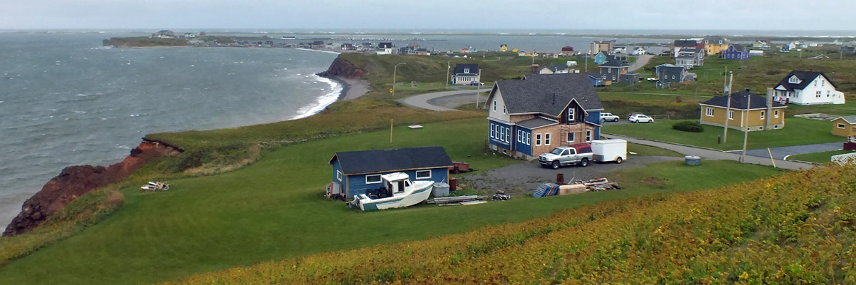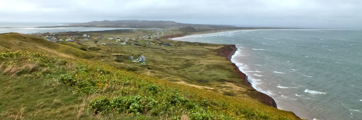 back at Bassin, down at La Grave, and across the water to Entry Island. The Plage de la Martinique stretches away north toward l'Île du Cap aux Meules.