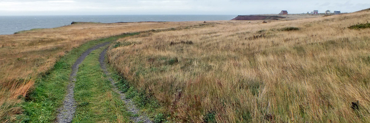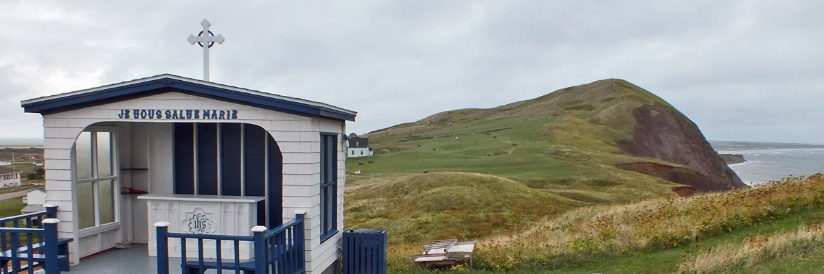 the north winter winds, but you wouldn't know it down at the shore. I walk a bit on the beach at l'Anse-à-la-Cabane, and along a track above the cliffs