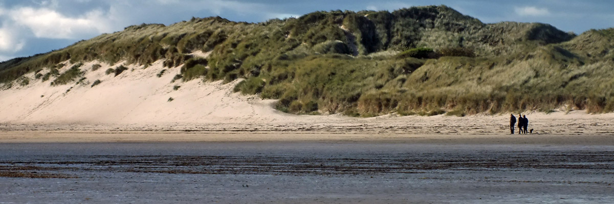 elect to follow the path on the links behind the dunes, rather than return to the beach. Eventually we come out on the road above Low Newton.