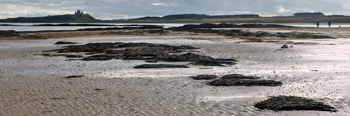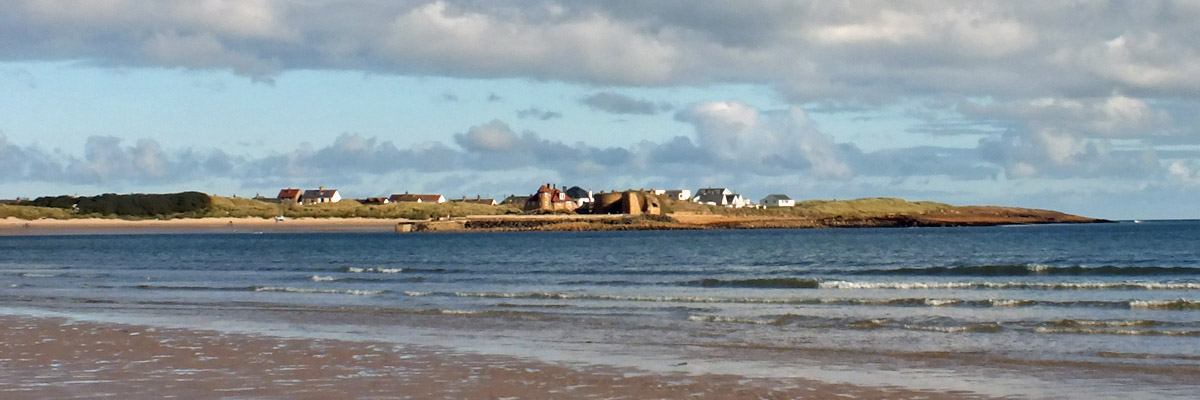 We pass through Beadnell, stopping to look at the lime kilns, and start out along the beach toward Newton. A short way along, the Brunton Burn