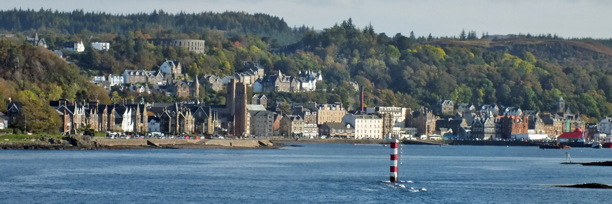 Whatever one thinks of Oban, it shows its best face to the departing traveler aboard the CalMac ferry on a sunny afternoon. We sail out the Sound