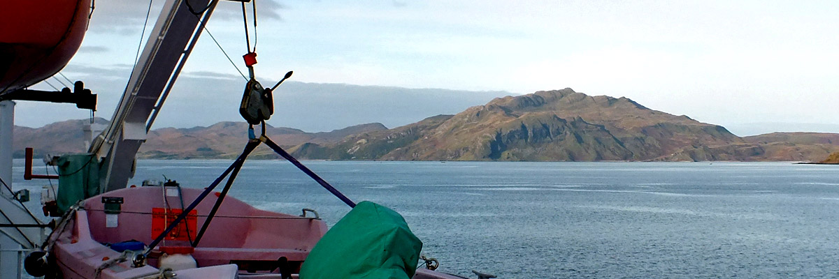 of Mull, with the namesake island and its capital, Tobermory, to port, Morvern and then Ardnamurchan to starboard. Out in the Sea of the Hebrides lie the